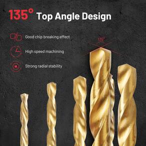 Compatível com chaves de fenda elétricas, chaves de impacto e outras ferramentas que podem usar hastes hexagonais de 6 mm. Pode ser utilizado para perfurar aço, cobre, alumínio, liga de zinco, ferro fundido, madeira, placa de fibra, placa de plástico, especialmente adequado para perfuração de placas finas. - ?Tamanhos completos?O conjunto de brocas de impacto inclui os 15 tamanhos mais utilizados (2 peças x 1/40.6 cm, 5/162.6 cm, 3/81.3 cm, 7/162.6 cm, 2 peças x 1/20.3 cm, 9/162.6 cm, 5/81.3 cm, 2 peças x 3/40.6 cm. cm, 7/81 3 cm, 1/10.2 cm, 5/40.6 cm, 3/20.3 cm), e também vem com uma caixa de armazenamento de plástico grosso, que pode atender perfeitamente às suas necessidades de trabalho. - ?Design de ângulo superior de 135°?Em comparação com a broca de torção de ângulo superior de 118°, o design de ângulo superior de 135° é mais propício à quebra de cavacos, o que reduz os problemas causados pelo emaranhamento excessivo de cavacos na broca ou furo e também evita efetivamente que a broca oscile e desvie, o que torna a broca cortada mais suavemente e melhora a precisão da perfuração y. - ?Ranhura parabólica?O sulco parabólico garante a suavidade da remoção de cavacos, evitando efetivamente o acúmulo de lascas no orifício e levando a problemas como brocas quebradas ou desgaste da parede do furo, etc. ; a parte traseira da ranhura parabólica tem uma grande lacuna, de modo que o refrigerante lubrificante possa penetrar na broca para resfriar totalmente e lubrificar a aresta de corte, reduzir o desgaste e o calor e melhorar a durabilidade e a eficiência da usinagem. - ?Revestimento de titânio HSS?As brocas HSS4241 têm excelente resistência ao desgaste e ao calor e podem lidar facilmente com ambientes de alta temperatura, o que é muito adequado para operações de perfuração de alta intensidade. O revestimento de titânio na superfície reduz o atrito durante o processo de perfuração e fortalece ainda mais a resistência à corrosão e ao desgaste, prolongando a vida útil da broca. O revestimento de titânio também inibe a geração de calor durante o corte, o que melhora significativamente a eficiência da usinagem. - ?Modelos compatíveis e materiais aplicáveis?Compatível com chaves de fenda elétricas, chaves de impacto e outras ferramentas que podem usar hastes hexagonais de 6 mm. Pode ser utilizado para perfurar aço, cobre, alumínio, liga de zinco, ferro fundido, madeira, placa de fibra, placa de plástico, especialmente adequado para perfuração de placas finas.