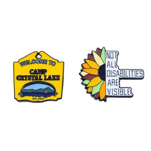 Material: liga Tamanho: 2,7 x 2,7 cm Peso: 13 g Quantidade: você receberá todas as peças em quantidade igual à primeira foto principal ShowCreative Quote Design Inclui dois broches esmaltados: um com girassol e a mensagem “Nem todas as deficiências são visíveis” e outro com a placa retrô “Camp Crystal Lake”, ao mesmo tempo estilosa e significativa. Material de liga durável Feitos de liga premium com acabamento liso em esmalte, esses alfinetes de blusa são leves, resistentes e resistentes ao desgaste e ao desbotamento. Estilo versátil Alfinetes de lapela perfeitos para jaquetas, mochilas, chapéus ou camisas, adicionando personalidade e estilo único a looks casuais, retrô ou de moda ao ar livre. Acessório unissex Projetado para homens e mulheres, esses broches são ideais para entusiastas da moda, colecionadores de citações ou qualquer pessoa que adore acessórios significativos. Seguros e fáceis de usar Equipados com um fecho forte, esses crachás permanecem firmes no lugar e são fáceis de colocar ou remover sem danificar os tecidos.