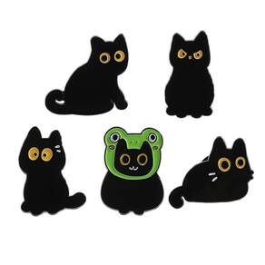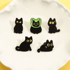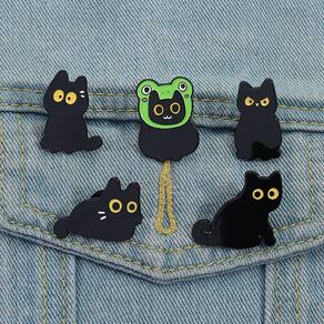 Material: liga Tamanho: 2,8 x 2,7 cm Peso: 21 g Quantidade: você receberá todas as peças em quantidade igual à primeira foto principal. ShowAdorable Black Cat Theme: O conjunto inclui lindos broches de gato preto com grandes olhos amarelos e um design exclusivo de chapéu de sapo para aumentar o humor. Material de liga durável: feito de liga de alta qualidade com revestimento de esmalte liso, garantindo cores brilhantes, acabamento detalhado e desgaste duradouro. Acessório versátil: perfeito como alfinetes de blusa, broche, alfinete de lapela ou crachá para decorar jaquetas, camisas, chapéus, cachecóis e bolsas. Compacto e leve: cada broche mede aproximadamente 2,8 x 2,7 cm e o peso total é de 21 g, confortável para uso diário sem danificar a roupa. Perfeito para amantes de gatos: acessório de moda divertido e peculiar, adequado para uso casual, festas, cosplay ou estilo diário.