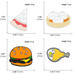 Material: liga Tamanho: 1,9 x 2,6 cm Peso: 18 g Quantidade: você receberá todas as peças em quantidade igual à primeira foto principal ShowCartoon Food Theme — Divertido conjunto de broches de esmalte com hambúrguer, bolinhos, fatia de pizza e coxa, perfeito para amantes da comida e um estilo moderno divertido. Construção em liga durável — Feita de liga de qualidade com acabamento em esmalte brilhante, resistente ao desbotamento, leve e resistente para uso prolongado. Acessório versátil — funciona como alfinetes de blusa, broche, crachá de lapela; adequado para jaquetas, camisas, mochilas, chapéus ou cachecóis. Estilo fofo e moderno — Cores vivas e padrões divertidos de comida criam um visual estiloso que se destaca e complementa roupas casuais ou de streetwear. Compacto e portátil — tamanho pequeno de aproximadamente 1,9 x 2,6 cm, leve 18 g, fácil de usar, armazenar ou transportar como parte de uma coleção de alfinetes.