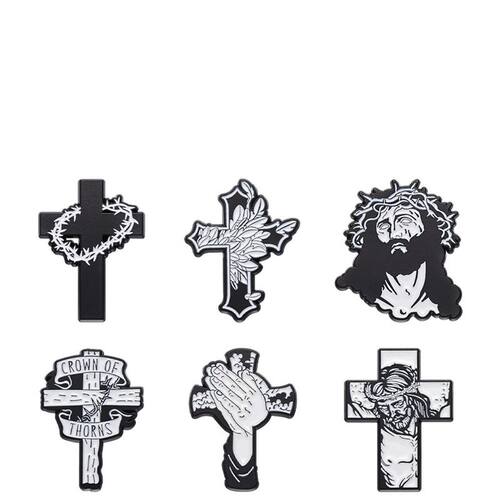 Material: liga. Tamanho: 2,5 x 3,1 cm Peso: 24 g Quantidade: você receberá todas as peças em quantidade igual à primeira foto principal. Mostra a Symbolic Cross Designs — Possui seis broches exclusivos de inspiração cruzada, incluindo Jesus com coroa de espinhos, mãos orando e padrões florais, para uma coleção significativa de acessórios. Construção em liga durável — Feitos de liga de alta qualidade com acabamento liso em esmalte, garantindo que esses broches sejam resistentes, duradouros e resistentes ao desbotamento. 🧥 Acessório versátil — Use como alfinetes de blusa, broche, crachás de lapela ou prenda em mochilas, jaquetas jeans, chapéus e cachecóis para roupas casuais e formais. Estilo gótico monocromático — A estética em preto e branco oferece uma aparência ousada e minimalista, adequada para amantes da moda gótica, reuniões cristãs ou uso diário. Compacto e leve — cada broche mede 2,5 x 3,1 cm e pesa apenas 24 g, o que os torna fáceis de transportar e confortáveis de usar sem aumentar o volume.