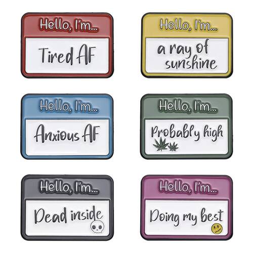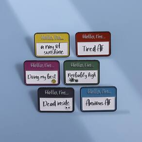 Material: liga Tamanho: 3x2,1 cm Peso: 48g Quantidade: você receberá todas as peças em quantidade igual à primeira foto principal ShowCreative Name Tag Design: apresenta broches coloridos de esmalte estilizados como crachás com textos humorísticos como “Tired AF”, “Ansious AF” e “Doing My Best”. Material de liga durável: feitos de liga de qualidade com revestimento de esmalte, esses pinos de broche são leves, robustos e resistentes ao desgaste e ao desbotamento. Tamanho compacto: cada broche mede 3x2,1 cm com um peso total definido de 48 g, tornando-os confortáveis de usar e fáceis de transportar para o uso diário. Acessório versátil: funciona como alfinetes de blusa, alfinetes de lapela ou crachás para jaquetas, mochilas, chapéus e roupas, perfeito para moda casual e estilos inovadores. Estilo de humor unissex: Projetados para homens e mulheres, esses broches engraçados adicionam personalidade e são ideais para estudantes, criadores de tendências ou colecionadores de acessórios peculiares.