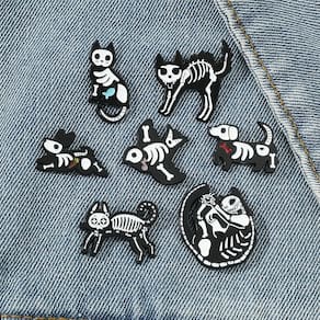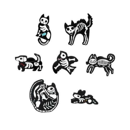 Material: liga Tamanho: 2,7 x 3 cm Peso: 20 g Quantidade: você receberá todas as peças em quantidade igual à primeira foto principal. ShowAnimal Skeleton Theme — Apresenta animais criativos em estilo esqueleto, incluindo gato, cachorro, pássaro e coelho, combinando estilo gótico escuro com elementos divertidos de desenho animado. Material de liga durável — Feito de liga de alta qualidade com acabamento esmaltado, leve (20g), robusto e resistente ao desbotamento. Estilo versátil — Funciona como alfinetes de blusa, alfinete de lapela ou crachá para jaquetas, casacos, mochilas e chapéus, adequado para homens e mulheres. Compacto e detalhado — Cada broche mede cerca de 2,7 x 3 cm, pequeno o suficiente para uso diário, mas projetado com detalhes góticos atraentes. Perfeito para ocasiões — Ideal para Halloween, eventos de cosplay, moda gótica, shows ou como acessórios divertidos para roupas alternativas.
