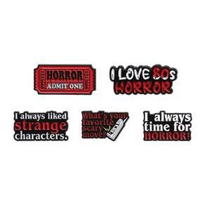 Material: liga. Tamanho: 3 x 1,5 cm Peso: 20 g Quantidade: você receberá todas as peças em quantidade igual à primeira foto principal. Design inspirado no Show Horror — o conjunto inclui broches esmaltados com citações assustadoras como “I Love 80s Horror” e “Qual é o seu filme de terror favorito?” , perfeito para fãs da cultura de suspense. Material de liga durável — Feito de liga resistente com acabamento esmaltado suave, garantindo desgaste duradouro e contraste de cores ousado. Tamanho perfeito e leve — cada crachá mede cerca de 3 x 1,5 cm, pesa 20 g no total, é fácil de colocar em jaquetas, camisas, chapéus ou bolsas. Uso versátil — Funciona como alfinetes de blusa, broche, broche de lapela ou crachá, adequados para fantasias de Halloween, festas, shows ou uso casual diário. Estilo de terror unissex — Projetado para homens e mulheres que amam acessórios góticos, punk e inspirados no terror, fazendo com que as roupas se destaquem com atitude.