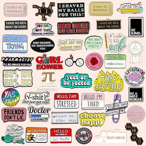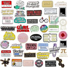 Material: Liga Tamanho: 3 x 2 cm Peso: 210 g Quantidade: você receberá todas as peças em quantidade igual à primeira foto principal. ShowMega Set — Uma grande variedade de broches esmaltados com citações engraçadas, palavras motivacionais, ícones científicos, gráficos retrô e designs coloridos inspirados em desenhos animados. Liga e esmalte — Feito de liga premium com acabamento esmaltado suave, garantindo cores brilhantes, detalhes nítidos e durabilidade duradoura. Emblemas de lapela — Funcionam perfeitamente como alfinetes de blusa, enfeites de lapela ou complementos elegantes para jaquetas, camisas, chapéus, mochilas e roupas casuais. Estilo moderno — Ideal para estudantes, adolescentes e jovens adultos que desejam mostrar personalidade, humor e criatividade por meio de acessórios exclusivos e modernos. E leve — Cada alfinete mede cerca de 3 x 2 cm com peso total de 210 g, é portátil e fácil de misturar e combinar para uso diário ou roupas temáticas.