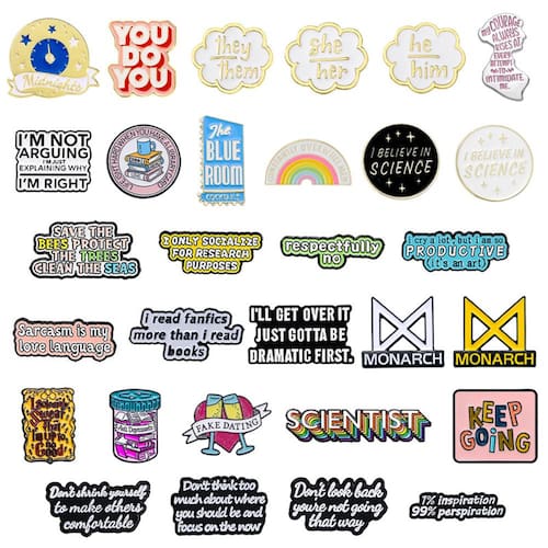 Material: liga Tamanho: 3 x 1,8 cm Peso: 13 g Quantidade: você receberá todas as peças em quantidade igual à primeira exibição fotográfica principal da Quote Designs — Apresenta alfinetes esmaltados com textos engraçados e motivacionais em inglês, como “Não estou discutindo” e “Keep Going”, perfeitos para o estilo diário. Material de liga — Feito de liga de alta qualidade com acabamento esmaltado suave, garantindo cores brilhantes, brilho duradouro e resistência ao desbotamento. Acessório de moda — funciona como broche, alfinete de blusa ou alfinete de lapela, adequado para jaquetas, mochilas, chapéus e roupas casuais do dia a dia. E leve — Cada crachá mede cerca de 3x1,8 cm com um peso total de 13 g, fácil de colocar e confortável de usar sem danificar os tecidos. Para colecionadores e amantes da moda — Um conjunto moderno de crachás para colecionadores de broches, estudantes ou qualquer pessoa que goste de acessórios peculiares, ousados e expressivos.