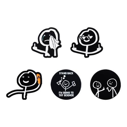 Material: liga. Tamanho: 3 x 2,9 cm Peso: 34 g Quantidade: você receberá toda a quantidade de peças da mesma imagem principal. ShowStick Figure Design — Conjunto de 6 broches com arte simples de stickman com expressões e textos engraçados, perfeitos para fãs do estilo minimalista de desenho animado. Material de liga — Feitos de liga premium com acabamento esmaltado, esses alfinetes de blusa são resistentes, resistentes ao desbotamento e duradouros para o uso diário. E leves — cada broche mede cerca de 3x2,9 cm e pesa 34 g, fáceis de colocar em jaquetas, mochilas, camisas ou chapéus sem aumentar o volume. Acessórios — Funcionam como broches, alfinetes de blusa ou de lapela, dando um toque nerd e engraçado a roupas de escritório, roupas escolares ou roupas casuais. Para estudantes e profissionais — Ideal para professores, programadores, entusiastas da ciência e qualquer pessoa que goste de distintivos esmaltados peculiares com designs divertidos.