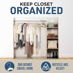 - Design resistente: construído para durar, nosso conjunto de cabides é construído com ABS reciclado e apresenta uma espessura de 0,24”, fornecendo suporte robusto com uma capacidade máxima de peso de 10 libras.