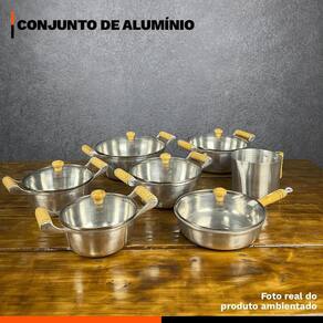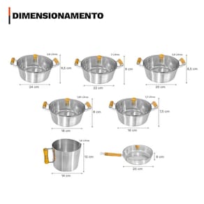 Distribuído por feheros shop Conjunto de caçarolas 7 peças alumínio fundido grosso + frigideira e canecão Atenção As panelas e frigideira deste conjunto são feitas de alumínio fundido polido, proporcionando alta resistência e excelente condução térmica. As tampas de vidro com puxadores de madeira permitem acompanhar o preparo dos alimentos com segurança e praticidade. Para garantir maior durabilidade, utilize utensílios de silicone, nylon ou madeira. Produto livre de pfoa e outras substâncias tóxicas. Informações do produto O conjunto de caçarolas 7 peças alumínio fundido grosso + frigideira e canecão é ideal para quem busca durabilidade, praticidade e eficiência na cozinha. Composto por cinco caçarolas de tamanhos variados, uma frigideira e um canecão de alumínio reforçado, este jogo é perfeito para o preparo das mais diversas receitas. As tampas de vidro com puxadores de madeira oferecem funcionalidade e estilo, tornando a experiência de cozinhar ainda mais agradável. Especificações técnicas - durabilidade: o alumínio fundido proporciona maior resistência, ideal para o uso diário e intenso. - design funcional: a tampa de vidro é prática para monitorar os alimentos enquanto cozinham, sem perder o calor. - fácil limpeza: o acabamento polido impede o acúmulo de resíduos e facilita a remoção de sujeira. - saúde e segurança: material livre de substâncias tóxicas, como pfoa, para garantir a segurança de suas receitas. - versatilidade no cozimento: compatível com fogões a gás e a lenha, sendo ideal para qualquer tipo de preparo. - eficiência energética: retenção e distribuição de calor eficientes, permitindo cozinhar de forma mais rápida e econômica. Ficha técnica do produto - panela caçarola 16 cm: diâmetro: 16 cm x altura: 7,5 cm x capacidade: 1,2 litros - panela caçarola 18 cm: diâmetro: 18 cm x altura: 8 cm x capacidade: 1,65 litros - panela caçarola 20 cm: diâmetro: 20 cm x altura: 8,5 cm x capacidade: 2,6 litros - panela caçarola 22 cm: diâmetro: 22 cm x altura: 9 cm x capacidade: 3,0 litros - panela caçarola 24 cm: diâmetro: 24 cm x altura: 9,5 cm x capacidade: 3,8 litros - frigideira 20 cm: diâmetro: 20 cm x altura: 6,0 cm - canecão: diâmetro: 14 cm x altura: 12,0 cm - material: alumínio fundido polido - cabo e puxadores: madeira - tampa: vidro temperado com borda de aço inox - espessura: 3 a 4 mm - cor: prata alumínio polido - compatibilidade: fogões a gás e a lenha Antes do primeiro uso - lave com esponja macia e detergente líquido. - seque bem e aplique uma camada fina de óleo vegetal na parte interna. - leve ao fogo baixo por 2 minutos, deixe esfriar e lave novamente. Após o uso - deixe esfriar antes de lavar. - use esponja macia, detergente neutro e utensílios de silicone, nylon ou madeira. Itens inclusos no pacote - 01 panela caçarola 16 cm de diâmetro, 7,5 cm de altura, capacidade de 1,2 litros - 01 panela caçarola 18 cm de diâmetro, 8 cm de altura, capacidade de 1,65 litros - 01 panela caçarola 20 cm de diâmetro, 8,5 cm de altura, capacidade de 2,6 litros - 01 panela caçarola 22 cm de diâmetro, 9 cm de altura, capacidade de 3,0 litros - 01 panela caçarola 24 cm de diâmetro, 9,5 cm de altura, capacidade de 3,8 litros - 01 frigideira 20 cm de diâmetro, 6,0 cm de altura - 01 canecão 14 cm de diâmetro, 11,0 cm de altura - 06 tampas de vidro com puxadores de madeira Todas as fotos são reais dos produtos. Qualquer dúvida, estamos à disposição Dúvidas frequentes 01 - os produtos são novos Tem R: sim, todos são novos, com 3 meses de do fabricante. 03 - como faço para acompanhar o envio R: ao acessar sua conta, nos detalhes do pedido, estará disponível o código de rastreio para acompanhar a entrega.