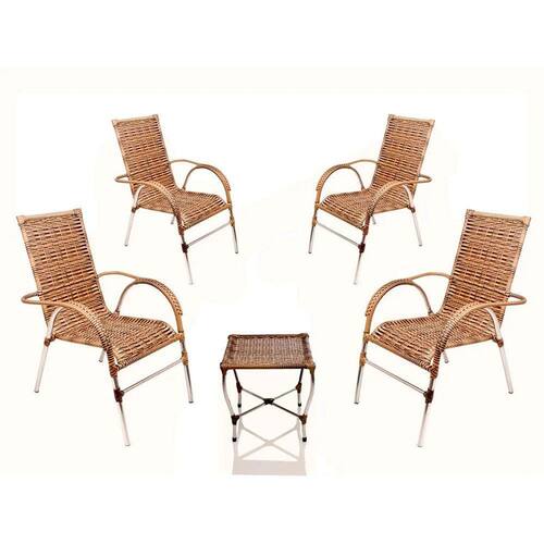 Conjunto De Cadeira Área Externa Chuva Sol Não Estraga Trama - Marrom Escuro