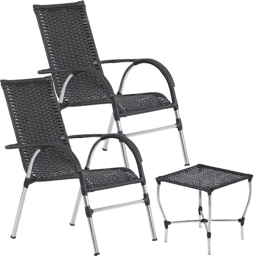 ITENS INCLUSOS: 02 Cadeiras Vênus em alumínio 01 Mesa de centro Vênus em alumínio