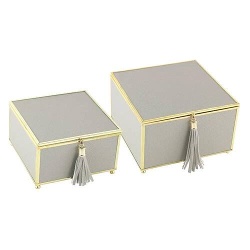 Conjunto de Caixas Decorativas Cinza/Dourado 2 peças - BTC A caixa decorativa é uma peça versátil e elegante para complementar sua decoração. Com seu design sofisticado e acabamento cuidadoso, ela pode ser Utilizado para guardar objetos pessoais ou simplesmente exibida como uma peça artística. A caixa decorativa é a escolha perfeita para aqueles que buscam um item versátil e sofisticado para complementar seu espaço. Adicione-a à sua coleção para ter um item funcional e elegante com um toque artístico. Material: Vidro, Metal e material sintético Medidas: G A x L x P : 20 x 21 x 15 CM P A x L x P : 15 x 16 x 09 CM Cor: Cinza e Dourado Marca: Não Informado Ean: 7898512871958