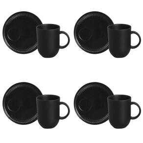 Conjunto de Canecas com Pires 04 Peças Linhas Preto Matte Porto Brasil - Incluso