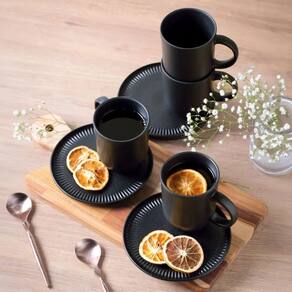 Conjunto de Canecas com Pires 04 Peças Linhas Preto Matte Porto Brasil - Informações