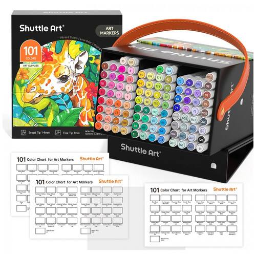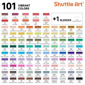100 CORES 1 Liquidificador: Os marcadores permanentes à base de álcool Shuttle Art Dual Tip contêm 100 marcadores de cores vibrantes que resistem ao desbotamento com o tempo, contém 1 liquidificador incolor e 1 estojo de zenamento Nosso estojo preto com zíper é perfeito para zenamento e também para viagens. PONTA DUPLA: Os marcadores Shuttle Art têm uma ponta larga de para cobertura rápida e uma ponta pontiaguda de para detalhes. Nossos marcadores são classificados para 300 metros de uso contínuo, o que fornece uma grande quantidade de tinta por marcador. TINTA FÁCIL DE MISTURAR E EM FORMA DE CÍRCULO: Os marcadores de ponta dupla Shuttle Art se misturam e se sobrepõem bem sem deixar marcas e secando rapidamente. Misturar cores é muito fácil, colocando uma cor única sobre outra, criando uma paleta de cores ilimitada. O cano em forma de círculo pode ser deslizado com facilidade e conforto. E também possui saliências na tampa para evitar que os marcadores rolem em superfícies lisas. CUIDADOS: O conjunto de marcadores não é tóxico e não contém ácido, é para crianças e estudantes, em conformidade com ASTM D4236. Para evitar o sangramento da tinta durante o uso, a ponta não deve permanecer muito tempo no papel. Os marcadores precisam ser escritos em um papel de marca específico para que não vazem para a próxima camada. Para evitar que o marcador seque e vaze tinta, recapitule e mantenha o marcador na horizontal após o uso Marca: Não Informado