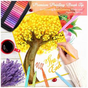72 CORES VIBRANTES: 72 Numeradas Variedade de cores com tinta vibrante à base de água. A tinta de alta qualidade combina perfeitamente para obter belos efeitos de coloração. Use a ponta do pincel para colorir, sombrear e misturar, e a ponta fina para detalhes menores. Cores ricas e vivas despertam sua criatividade artística. Coloque e misture facilmente cores diferentes sem se preocupar com manchas e manchas, é perfeito para desenhar animais, flores e padrões.