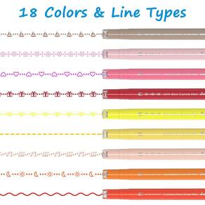 Conjunto de canetas marcadoras de curvas AECHY de 18 peças, canetas marcadoras de ponta dupla com 18 formas curvas diferentes e linhas de marcação de 18 cores, marcador de curvas estético para material escolar Journal Planner
