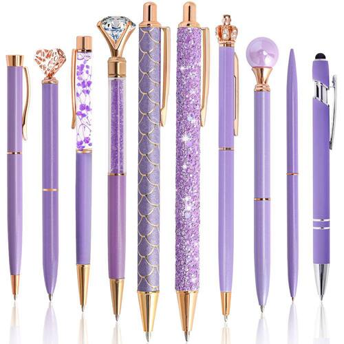 Canetas esferográficas divertidas: nosso conjunto de canetas esferográficas roxas contém 10 canetas com estilos diferentes. A quantidade suficiente e os designs elegantes podem satisfazer suas diversas necessidades de uso e substituição na vida diária.