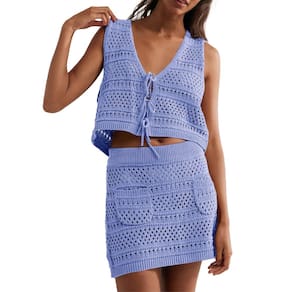 Tão atemporal e perfeito para dias de praia, este lindo conjunto da nossa coleção de saída de praia de crochê será ideal para todas as estações. Mantenha-o coordenado com um conjunto que é perfeito para misturar e combinar. Ajuste relaxado inspirado no colete, decote em V, fechos de gravata na frente, sem forro. A minissaia possui cintura elástica de cintura alta para facilitar o puxão, bolsos caídos - Essenciais: Descubra nossa variedade de saídas de banho femininas, com minissaia de cintura alta, como roupa de praia com costura vazada. A gravata frontal é projetada para ser fácil de colocar e tirar. O conjunto de saída de praia se tornará sua roupa de praia favorita - Design exclusivo: a saída de praia de crochê de 2 peças apresenta malha boho leve, gola V, fecho frontal de amarrar, adicionando um toque de gosto feminino. Nossas saídas de praia femininas não são apenas um conjunto de roupas, são tendências da moda e malhas funcionais - LEVE: tecidos macios e respiráveis com designs transparentes adicionam um toque sexy ao seu visual de verão. Reveladora, mas modesta, nossa saída de banho pode fornecer cobertura enquanto ainda exibe roupas por baixo. Esta blusa cropped feminina sem mangas não só pode ser usada como saída de praia, mas também pode ser usada como uma regata de malha leve de verão - OCASIÃO: Nossos conjuntos de saias de praia femininas de 2 peças são uma combinação de tops sem mangas e mini vestido quente, perfeito para férias na praia. A saída de praia feminina é uma adição definitiva à sua coleção de roupas de banho. Adequado tanto para uso casual, como festas, regresso a casa, sair, praia, férias, viagens, namoro - Dicas quentes: para uso duradouro, recomendamos lavar à mão em água fria, secar na horizontal e evitar alvejante. Basta seguir nossas instruções de cuidados e você poderá usá-lo por muitos anos