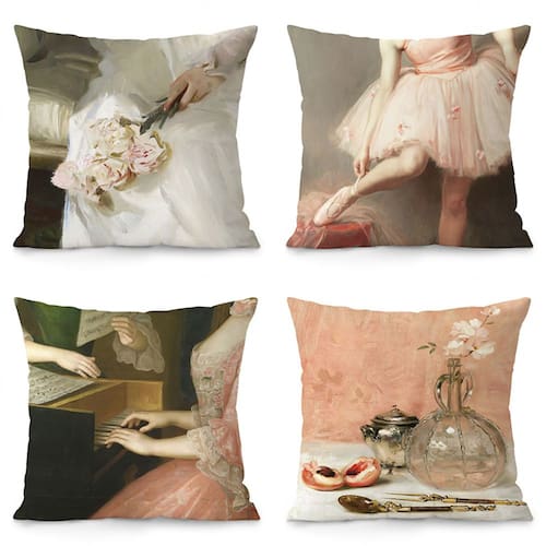 Material: pelúcia Peso: 1000 g Tamanho: 35 × 35 cm Design de arte atemporal: este conjunto de 4 fronhas apresenta obras de arte de inspiração vintage, incluindo temas florais e de balé suaves, perfeitos para adicionar um toque artístico à sua sala de estar. Tecido de linho premium: Feitas de material de linho macio e durável, essas fronhas oferecem conforto e qualidade duradoura para o uso diário. Decoração de casa versátil: adequadas para vários ambientes domésticos, essas fronhas são ideais para sofás, camas e cadeiras, aprimorando o ambiente de qualquer cômodo ou escritório. Fácil de cuidar: essas fronhas são laváveis à máquina e fáceis de manter, mantendo suas cores vibrantes e texturas intactas após muitas lavagens. Tamanho perfeito: cada capa de almofada mede 45 x 45 cm, projetada para caber na maioria das inserções de travesseiro padrão, oferecendo um toque decorativo elegante à sua casa.