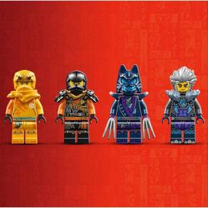 O brinquedo ninja vem com um modelo do bebê Riyu e 4 minifiguras NINJAGO: o alpinista Cole com gancho de escalada e katana, Arin com gancho de escalada e katana, um Guerreiro Máscara de Lobo com garras e Cinder com uma espada.