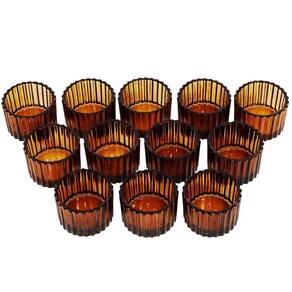 VOHO Conjunto de 12 castiçais âmbar Tealight, castiçais votivos pequenos de vidro marrom de vidro para decoração de casa, suporte de velas transparentes para centros de mesa e decoração de casamento - Conjunto de castiçais votivos âmbar: total de 12 contagens, cada um tem 5 cm L x 3,8 cm A, serve perfeitamente para velas de luz de chá padrão, pequenas velas votivas, pequenas velas de LED (andles não incluídos). A cor marrom aquece a luz das chamas sem bloquear muita luz, para pequenas velas - Suportes de luz de chá a granel: Pequenos castiçais para luz de chá, sem bloqueio para aquecer o brilho ou calor, trazendo felicidade na maioria das ocasiões importantes, como Natal, festa de aniversário, chá de bebê, aquecimento de casa, Ação de Graças, Halloween, casamento etc - Suporte de vela votiva para decoração de férias: para mesa, jantar à luz de velas, sala de jantar, sala de estar, lareira, estante, sala de estar, escritório e bar. São castiçais vintage com textura de vidro - Suporte de vela de vidro para vela de mesa: o mini suporte votivo é projetado com vidro sólido espesso, tornando-o resistente e eficaz para uso diário constante. Essas coisas estéticas são usadas como suporte de vela, decoração de mesa, exibição de peça central e peitoril da janela - Presente perfeito para ela: estes castiçais de luz de chá âmbar verdadeiro são embalados em caixa dupla e embrulhados em plástico bolha, garantindo receber um conjunto de 12 castiçais de ótima forma. Para mulheres, mães, amigas, colegas, vovó e seu amor, adiciona mais diversão e calor à sua vida - Suporte de vela de 5 cm, conjunto de 12, vidro marrom - Presente de Natal para mulheres no Dia dos Namorados - Castiçais vintage com textura canelada - Pequenos suportes de luz de chá de vidro