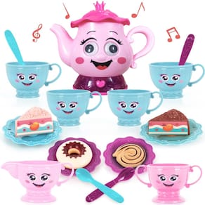 O conjunto de chá de seus sonhos Estimule sua imaginação Um conjunto de chá adequado para aquela princesinha! Quando sua mini majestade real e o resto de seus amigos reais se reúnem, eles terão todos os acessórios necessários para organizar uma festa de chá de conta como nenhuma outra. Este conjunto vem com 19 peças – o suficiente para até 4 jogadores. Estamos falando de 1 bule de chá, 1 açucareiro, 1 creme, 4 xícaras de chá, 4 pratos, 4 colheres e 4 doces de fantasia. Mas são os efeitos de som e luz que diferenciam este conjunto do resto. Ligue o bule de chá e a base pisca em uma infinidade de cores enquanto a música melódica enche a sala. Incline e ele cria um som realista que é ativado por movimento! Seja jogado sozinho ou com amigos, horas de diversão serão o resultado. Ótima ideia de presente Procurando um presente de aniversário que tornará aquele dia especial inesquecível? Um presente de Natal que não promete nada além de sorrisos? Este conjunto de chá para crianças é exatamente o que você precisa para soprar aquele pequeno! É ótimo para crianças a partir de 3 anos e é feito de materiais de alta qualidade para suportar a emoção. Mantenha as crianças entretidas por horas sem ter nada a perder! É por isso que você vai adorar este conjunto de chá de festa: - Vem com 19 peças; o suficiente para 4 jogadores. - Tem música e sons ativados por movimento. - A base do bule de chá pisca em rosa, branco, verde, azul e - Feito para compartilhar: um conjunto de chá para meninas com peças suficientes para 4 jogadores! Nosso conjunto de chá iluminado para meninas vem com 1 bule de chá, 1 tigela de açúcar, 1 creme, 4 xícaras de chá, 4 pratos, 4 colheres e 4 doces de fantasia. - Sons ativados por movimento: graças aos sensores de movimento, o bule de chá cria um som quando inclinado para levar a brincadeira de faz de conta para o próximo nível. Também produz música para tornar a brincadeira um evento melodioso. - Lindas luzes: quando ligado, o bule de chá de brinquedo acende a imaginação com flashes de rosa, branco, verde, azul e vermelho. Requer 3 pilhas LR44 para alimentar as luzes e sons, que vêm incluídas. - GARRAÇÃO DE ADORABILIDADE: São os pequenos detalhes que tornam nossos conjuntos de chá infantis para meninas ainda mais especiais. Como o rosto no bule de chá, os lindos tons de azul e vermelho e os detalhes deliciosos nos doces de brinquedo. - Ótima ideia de presente: aniversário, feriado ou qualquer outra coisa, este conjunto de chá iluminado é o deleite perfeito. Vem embalado em uma caixa colorida para inspirar maravilhas à primeira vista. Para maiores de 3 anos