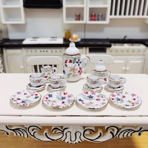 Esses requintados conjuntos de xícaras de chá em miniatura são clássicos atemporais, adequados para a decoração da cozinha, sala de jantar, sala de estar, restaurante, bar e outras áreas da casa de bonecas.