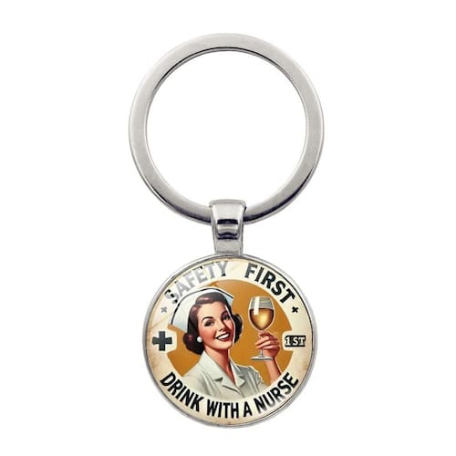 • Charmoso design vintage de enfermeira Este conjunto de chaveiros e pingentes apresenta um design retrô divertido com uma enfermeira segurando um copo e o slogan “Segurança em primeiro lugar, beba com uma enfermeira”. É um acessório divertido, ideal para profissionais de saúde e fãs de enfermagem. • Material durável e de alta qualidade Feito de metal de alta qualidade, este chaveiro e pingente são feitos para durar. O acabamento prateado polido e o design claro e vibrante o tornam um acessório durável e visualmente atraente para uso diário. • Presente perfeito para enfermeiras. Ideal para enfermeiras e profissionais de saúde, este conjunto de chaveiros e pingentes é um presente atencioso. É a maneira perfeita de celebrar as enfermeiras trabalhadoras da sua vida ou de dar um toque divertido aos acessórios. • Versátil e estiloso, este chaveiro pode ser colocado em suas chaves, bolsas ou mochilas, enquanto o pingente é uma adição elegante a qualquer colar. Uma forma divertida e funcional de mostrar gratidão por enfermeiras e profissionais de saúde. • Ótima ideia de presente para profissionais de saúde Um presente perfeito para enfermeiras, médicos ou profissionais de saúde, este conjunto de chaveiros e pingentes certamente trará um sorriso. É um acessório único e divertido para aniversários, feriados ou qualquer ocasião especial.