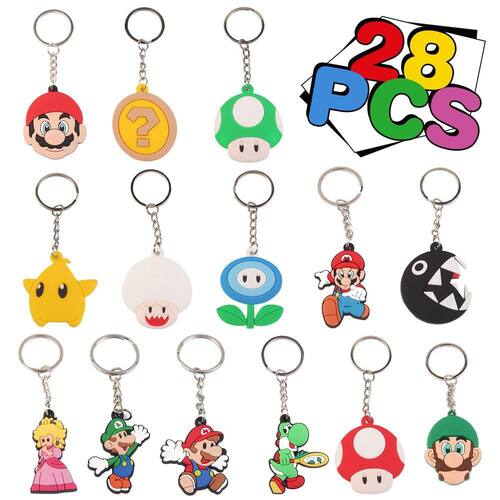28 peças de chaveiros com tema Mario, suprimentos para festas temáticas de desenhos animados de Mario para crianças, lembrancinhas