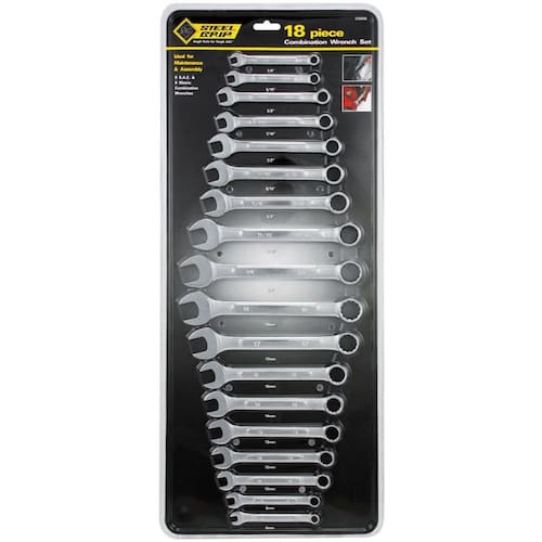 Conjunto de chaves combinadas Steel Grip 18 peças 6 mm 8 mm 10 mm 11 mm 12 mm 13 mm 15 mm 17 mm 19 mm 1/4