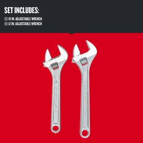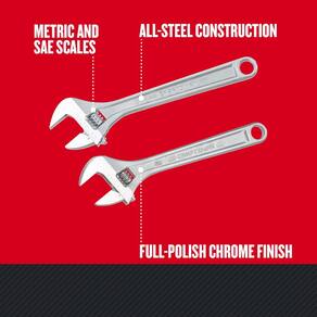 CRAFTSMAN Conjunto de chaves ajustáveis, 2 peças (CMMT12002) - RESISTÊNCIA À CORROSÃO: O conjunto de chaves ajustáveis tem acabamento cromado polido completo - IDENTIFICAÇÃO DE TAMANHO RÁPIDO: A chave ajustável vem com grandes marcações - Versatilidade adicional: a chave vem com mandíbulas de abertura ampla - Atende ou excede as especificações ASME