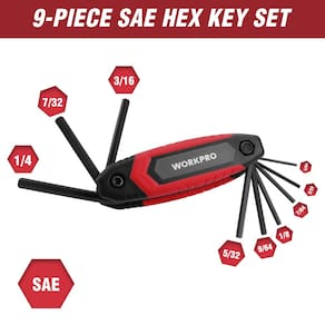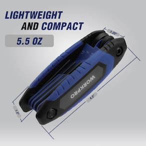 WORKPRO Conjunto de chaves Allen dobráveis de 25 peças, SAE, métrica, conjunto de chaves hexagonais Torx incluído, conjunto de 3 chaves Allen portáteis para reparo doméstico básico e aplicações gerais - Tamanho disponível: o conjunto de 3 chaves Allen dobráveis contém conjunto de chaves hexagonais métricas de 8 peças (azul), conjunto de chaves hexagonais SAE de 9 peças (vermelho) e conjunto de chaves hexagonais torx de 8 peças (verde). Tamanhos principais: 1,5 mm, 2 mm, 2,5 mm, 3 mm, 4 mm, 5 mm, 6 mm, 8 mm, 5/162.6 cm, 3/81.3 cm, 7/162.6 cm, 1/20.3 cm, 9/162.6 cm, 5/81.3 cm, 3/40.6 cm, 7/81.3 cm, 1/10.3 cm. 2 cm, T9 , T10, T15, T20, T25, T27, T30, T40. Este conjunto de chaves Allen com diferentes tamanhos é perfeito para reparos domésticos básicos, montagem de móveis e várias tarefas de manutenção - Qualidade superior: A estrutura composta com inserções laterais de borracha permite uma aderência segura. Alça larga com materiais PP e TPR para torque potente e aderência confortável. Lâminas de aço cromo-vanádio tratadas termicamente com acabamento de óxido preto para durabilidade e resistência à corrosão - Fácil de usar: uma borda chanfrada ajuda a guiar a chave inglesa para uma entrada suave e fácil da chave sextavada. As marcações de tamanho visíveis são impressas em cada chave hexagonal e alça para facilitar a identificação. Certifique-se de escolher o caminho certo - Construção de peça única: a estrutura de peça única garante a máxima durabilidade, enquanto o acabamento antiderrapante oferece uma aderência segura, mesmo em condições desafiadoras. Este recurso de design melhora o desempenho e a segurança, tornando-o um item essencial para acessórios de tiro com arco para arcos compostos - Ampla aplicação: o conjunto de chaves Allen WORKPRO de 25 peças é uma ferramenta perfeitamente manuseada que ajuda você a montar móveis, apertar uma alça ou consertar uma bicicleta. É fácil de transportar ou armazenar, adequado para uso familiar ou ao ar livre. Traz a máxima conveniência para sua vida