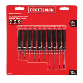 CRAFTSMAN Conjunto de chave de fenda, precisão, 10 peças (CMHT65070) - A ponta de óxido preto oferece maior durabilidade e aderência sem comprometer o ajuste da ponta. - A zona de velocidade oferece controle de rotação rápido para uma descida eficiente. - A zona de torque oferece textura e geometria de aderência adicionais para aplicações de torque pesado. - A zona tátil de precisão oferece controle de rotação para tarefas de precisão. - Garantia vitalícia total, consulte a seção "Garantia e suporte" abaixo para obter todos os detalhes
