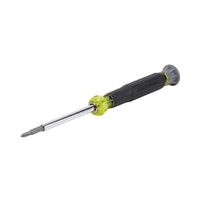 Klein Tools Conjunto de chave de fenda eletrônica 32581 4 em 1 com 2 fendas, 2 brocas Phillips usinadas com precisão, ideal para blocos de terminais - Precisão e versatilidade: Chave de fenda eletrônica 4 em 1 Klein Tools com pontas não magnéticas para trabalho preciso em eletrônicos - Tampa giratória premium: a tampa de rotação livre permite que sua palma descanse no lugar para controle ideal e fixação precisa - Barra cromada: oferece um acabamento suave e resistência à corrosão para utilidade duradoura - Alça de almofada: oferece maior conforto e torque enquanto trabalha em equipamentos pequenos - Brocas usinadas com precisão: as brocas tratadas termicamente oferecem ajuste exato para reduzir a saída - Troca fácil de broca: o eixo intercambiável permite a troca rápida e conveniente das brocas para combinar com a tarefa em mãos - Design leve: pesando apenas 31 g, esta chave de fenda é leve e fácil de manusear durante o trabalho eletrônico delicado