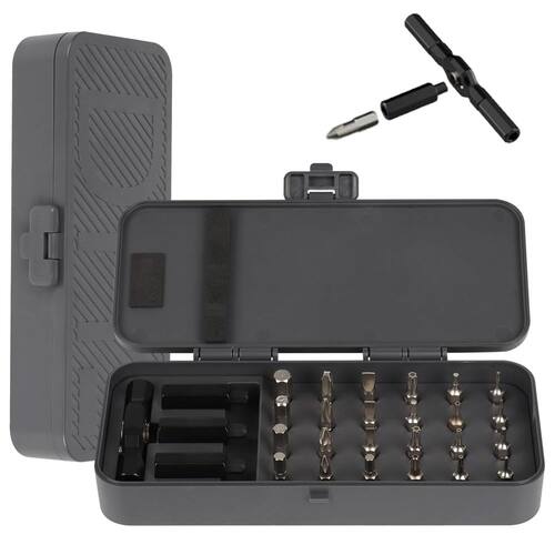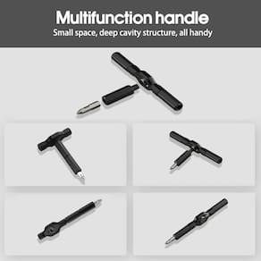 Limoruns Conjunto de chaves de fenda catraca 24 em 1, um kit de ferramentas versátil e compacto projetado para precisão e conveniência. Seja você um entusiasta de bricolage, um técnico de reparo ou apenas lidando com projetos domésticos do dia a dia, este conjunto tem o que você precisa. Feitas com aço S2 de grau industrial, as 24 pontas intercambiáveis são feitas para durar. O mecanismo de catraca bidirecional economiza tempo e esforço, enquanto o design de montagem de três vias garante que você possa trabalhar confortavelmente até mesmo nos espaços mais apertados. Apesar de seu tamanho mini e estrutura leve, este conjunto de chaves de fenda não compromete a qualidade. Suas pontas magnéticas mantêm as brocas firmemente no lugar, garantindo precisão e facilidade de uso. Embalado em uma capa elegante e portátil, este conjunto não é apenas funcional, mas também esteticamente agradável, tornando-o um excelente presente para o Dia dos Pais, aniversários ou qualquer ocasião. Seja para conserto doméstico, manutenção de eletrônicos ou como um brinquedo prático para crianças, este conjunto é um item essencial para qualquer caixa de ferramentas. - · O conjunto abrangente de chaves de fenda 24 em 1 inclui 24 brocas de aço S2 de nível industrial: fenda (SL4, SL5, SL6), Phillips (PH1, PH2, PH3), Torx (T5-T27), hexágono (H1.5-H8) e Pozidriv (PZ2). Perfeito para lidar com uma ampla variedade de tarefas, desde reparo de eletrônicos até projetos de bricolage. - · · Design de catraca bidirecional para uso sem esforço. O mecanismo de catraca que economiza trabalho garante uma operação suave e eficiente. Adequado para tarefas profissionais, manutenção doméstica ou até mesmo como um conjunto de ferramentas adequado para crianças para aprendizagem prática. - · · Conjunto versátil de 3 vias para qualquer espaço. Adapte-se a espaços apertados ou estranhos com as opções de montagem de 3 vias da chave de fenda. As pontas magnéticas fixam as pontas firmemente no lugar para precisão e conveniência. - · · Compacta e portátil com qualidade durável, pesando apenas 400 g e menor que a palma da mão, esta ferramenta oferece brocas de aço de liga de cromo-molibdênio S2 de nível industrial, garantindo resistência e durabilidade em um mini design. - · · Design elegante e escolha de presente ideal. Uma aparência elegante e de alta qualidade combinada com uma bolsa de armazenamento compacta torna este conjunto de chaves de fenda um presente prático e atencioso para entusiastas de bricolage, profissionais e até crianças.