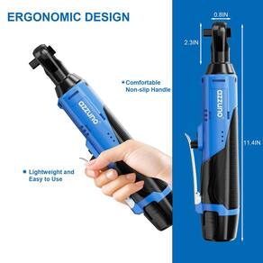 - ?Design ergonômico, confortável de usar?A chave catraca elétrica pesa apenas cerca de 700 g (sem bateria). O tamanho compacto permite que os usuários trabalhem em espaços pequenos e compartimentos do motor, e é equipado com uma haste de extensão para fácil operação em áreas difíceis de alcançar. A catraca elétrica possui uma aderência de borracha antiderrapante que amortece o impacto durante o trabalho, reduz a fadiga das mãos e aumenta o conforto durante o uso