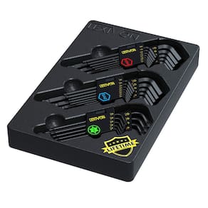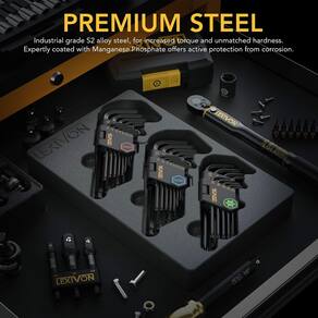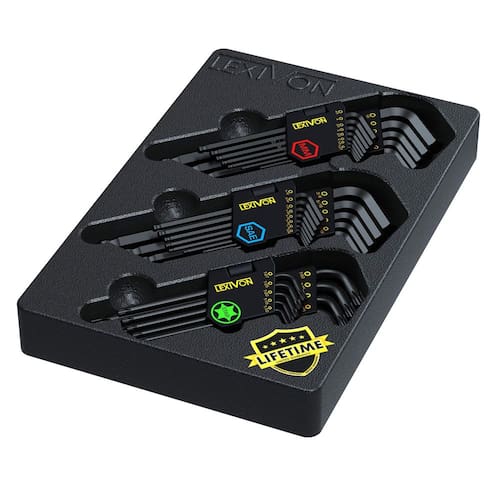 LEXIVON Conjunto de chaves mestras, 35 peças de chaves sextavadas de extremidade esférica de braço longo | Pacote com 3 unidades métricas/SAE e estrela, liga de aço industrial S2 (LX-131) - Premium – Tamanhos hexagonais e Torx precisamente usinados. Feito e projetado com materiais superiores para maior torque e dureza incomparável. - Durável – Aço de liga S2 de grau industrial, tratado termicamente aumentará a potência de giro. Resistente, superará o cr-v regular ou materiais de carbono comuns. - Longevidade – Revestimento de fosfato de manganês para proteção contra ferrugem e corrosão. Além disso, as bordas chanfradas e o design da extremidade esférica fornecerão entrada de ângulo de até 25 graus. - Confortável – Todos os tamanhos que você pode precisar, organizados em uma bandeja. E os tamanhos gravados a laser facilitarão a identificação! - 100% livre de riscos – atende e excede o ANSI (The American National Standard Institute) e é apoiado por nossa garantia vitalícia limitada para sua total tranquilidade.