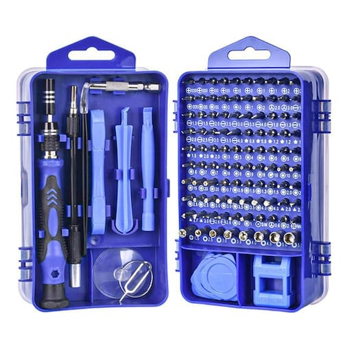 Cor: Azul Conjunto de chaves magnéticas multifuncionais 115 em 1 Conjunto de ferramentas manuais. Vem com todas as necessidades para uma grande variedade de trabalhos. Perfeito para reparação de laptops, dispositivos móveis e outros itens.
