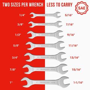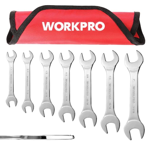 WORKPRO Conjunto de chave dobrável SAE super fina, 7 peças, 6 mm a 3,8 cm, conjunto de chaves finas ultrafinas com bolsa organizadora, para porcas finas, espaços estreitos - Chaves finas resistentes, estrutura de peça única feita de aço carbono premium com acabamento polido espelhado. Cromado para resistência à ferrugem, tratado termicamente para maior resistência e longa vida útil - Superfina, 70% mais fina do que as chaves regulares, serve bem para porcas finas, espaços estreitos e usinada com precisão para um ajuste perfeito em fixadores, proporcionando melhor torque sem escorregar - Use em qualquer lugar, conjunto de chaves finas amplamente utilizado, não apenas em bicicletas, motocicletas, consertos de carros, manutenção, casa, máquinas e energia elétrica. Faça seus trabalhos rapidamente - Mantenha limpo e arrumado, o conjunto de chaves vem com uma bolsa de enrolar para armazenamento conveniente, com tamanho impresso para facilitar a organização e cordas para pendurar para que você possa pendurá-lo bem na parede ou placa de fixação - Dois tamanhos por chave, menos para carregar e mais fácil de encontrar o tamanho, o conjunto de chaves SAE inclui tamanhos de 1/4 a 1-1/40.6 cm: 1/4, 5/16, 3/8, 7/16, 1/2, 9/16, 5/8, 11/16, 3/4, 13/16, 7/8, 15/16, 15/16, 15/16, 13/16, 7/8, 15/16. 6, 1, 1 -1/40.6 cm