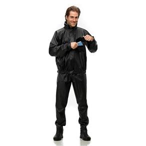 Conjunto de chuva para motociclista Roupa de chuva especial para os motociclistas Material 100 % impermeável Fácil de vestir Refletivos Jaqueta com bolso, com refletivo peito e costas e punhos com tiras aderentes. Fechamento frontal com zíper e tiras aderentes. Com gola. Espessura 0,30 Cor: preto Medidas: Jaqueta: Comprimento Total: 84 cm Tórax: 140 cm Manga: 81 cm Barra da cintura: 140 cm Calça Cintura: 120 cm Comprimento Total: 110 cm Entre Pernas : 84 cm Gancho: 72 cm Altura da pessoa ( + ou -): 1,73 m Peso: 1.200 Tamanho do produto dobrado (embalado) : 49 x 25 x 10 cm Envio imediato