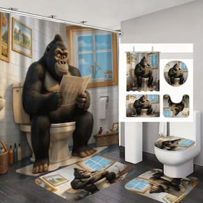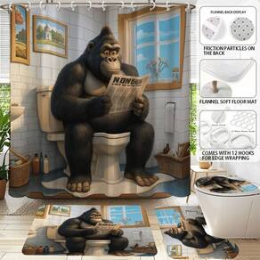 Tamanho do tapete antiderrapante: 45* 40 cm; tamanho do tapete de banho: 75* 45 cm; tamanho do assento do vaso sanitário: 36* 40 cm; tamanho da cortina de chuveiro: 180* 180 cm; peso: 710 g; material: fibra de poliéster; cor: igual à primeira foto; pacote: 1 tapete antiderrapante, 1 tapete antiderrapante de banheiro, 1 x assento sanitário, 1 x cortina de chuveiro Design de desenho animado exclusivo — Apresenta um divertido tapete antiderrapante Ilustração 3D de gorila que traz humor e personalidade ao seu banheiro, ao mesmo tempo em que aumenta o interesse visual. Tecido de poliéster durável — A cortina de chuveiro é feita de poliéster de qualidade que é macio, duradouro, de secagem rápida e fácil de manter para o uso diário. Conjunto completo de 4 peças — Inclui uma cortina de chuveiro à prova d'água, tapete antiderrapante, tapete em forma de U e tampa de vaso sanitário, criando um conjunto coordenado de decoração de banheiro. Suporte antiderrapante — Os tapetes apresentam uma parte inferior antiderrapante segura, ajudando a reduzir o escorregamento e oferecendo um apoio confortável para os pés. Fácil instalação e ajuste versátil — vem com ganchos para configuração rápida; adequado para casas, apartamentos, banheiros de dormitórios e espaços que precisam de uma atualização moderna e divertida.