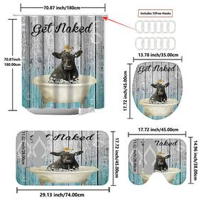 Tamanho do tapete antiderrapante: 45* 38 cm; tamanho do tapete de banho: 74* 45 cm; tamanho do assento do vaso sanitário: 35* 45 cm; tamanho da cortina de chuveiro: 180* 180 cm; peso: 675 g; material: poliéster; cor: igual à primeira foto; pacote: 1 x tapete antiderrapante, 1 x tapete antiderrapante de banheiro, 1 x assento de vaso sanitário, 1 x cortina de chuveiro Charming Farmhouse Art: apresenta um tapete antiderrapante vaca relaxante em uma banheira vintage com bolhas e um pato de borracha, encostada a painéis rústicos de madeira para um visual aconchegante de banheiro inspirado no campo. Tecido de poliéster durável: feito de poliéster de qualidade que é macio, duradouro e resistente ao desbotamento, garantindo uma clareza de impressão vibrante no uso diário. Impermeável e de secagem rápida: projetado para repelir a umidade com eficácia, ajudando a manter a área do chuveiro limpa, seca e fresca durante todo o dia. Conjunto coordenado de decoração de banheiro de 4 peças: inclui uma cortina de chuveiro, tapete antiderrapante, tapete de banho e tampa de vaso sanitário para um conjunto de decoração de banheiro completo e harmonioso. Suporte antiderrapante para segurança: os tapetes são equipados com fundos antiderrapantes seguros para ajudar a evitar deslizamentos em ladrilhos ou pisos de madeira, aumentando o conforto e a estabilidade.
