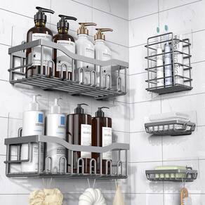 São necessárias muitas latas e garrafas para chuveiros e lavagem. Não é aconselhável manter o xampu no chão ou o sabão longe do seu alcance. Projetamos o conjunto de organizador de chuveiro para armazenamento de banheiro para facilitar sua vida diária e tornar a vida mais confortável. Tudo o que você precisa para um banho tem um lugar para se acalmar e está sempre acessível, seja para sabonete líquido, sabonete facial, sabonete, escova de dentes, pasta de dente, toalha ou barbeador. Always Getting Wet, But Never Rust Feitos com aço inoxidável SUS 304 premium, os acessórios de banheiro são feitos para durar e parecer novos depois de anos. Não mostre medo de água e umidade. Muito menos a tinta de cozimento de alta temperatura na superfície oferece proteção contra ferrugem, corrosão e arranhões. Um design oco proporciona drenagem rápida e eficiente de água e secagem ao vento. A decoração do banheiro nasce para ambientes úmidos, como banheiros. Crie laços fortes, chega de cair. O adesivo reforçado adiciona uma área de contato entre ele e a superfície aplicada, criando uma ligação sólida e inquebrável para suportar o cesto do chuveiro com uma capacidade máxima de carga de 18 kg. Em comparação com um design de gancho ou ventosas, o tipo de adesivo se destaca com maior compatibilidade e maior confiabilidade. Sempre aplique em uma superfície lisa e sólida e espere 24 horas antes de usar para obter o melhor efeito. Decoração decente para cozinha/banheiro. O organizador de chuveiro é feito delicadamente sem pontos soldados expostos para machucar as mãos ao colocar ou alcançar os itens dentro. Além da função de um organizador de chuveiro para abrigar as necessidades de chuveiro no banheiro, essas cestas serão ótimas para obter alguns dispositivos como óleos, temperos e esponjas bem organizados para a cozinha. O tempo gasto na classificação e organização de itens será recompensado em vez de desperdiçado. - Conjunto de 5 organizadores de chuveiro suspensos para espaço de armazenamento suficiente no banheiro: o organizador de banheiro vem com 5 peças para diferentes usos, incluindo 2 caixas de chuveiro, 2 suportes de sabonete, 1 suporte de escova de dentes e 5 adesivos. Acomoda suprimentos de lavagem ou temperos de cozinha facilmente com grandes capacidades para aproveitar ao máximo o espaço e facilitar sua vida; ideal para o dormitório/banheiro/cozinha/vaso sanitário/sala de ferramentas. - Aço inoxidável durável, design vazado inteiro: construído com 100% aço inoxidável SUS 304 premium, cada prateleira de chuveiro é durável, à prova de ferrugem, à prova d'água e à prova de arranhões, graças ao seu processo de pintura de cozimento de alta temperatura. Dura até 8 anos, mesmo em condições úmidas. Um design oco permite boa ventilação e drenagem, fácil de limpar. Este será o produto mais durável que você já usou. - Peso de rolamento de 18 kg, confiável e estável: os mais recentes adesivos transparentes atualizados oferecem confiabilidade ultra-forte com até 18 kg de peso de rolamento, que é testado por instituições profissionais. Mantenha as latas e garrafas no suporte do chuveiro do banheiro e as torne fáceis de pegar e usar. Nunca se preocupe com problemas de queda após a instalação adequada. - Adesivo mais forte para fácil instalação, sem perfuração: a instalação leva apenas alguns minutos, não requer furos ou ferramentas e não danifica a parede. Limpe a superfície, cole os adesivos na parede e pendure as prateleiras do chuveiro para usar. Adequado para superfícies lisas como azulejos/mármore/vidro/metal, mas não para superfícies irregulares como paredes pintadas. - Solução de armazenamento eficiente para cozinha/banheiro: perfeita para decoração de banheiro. É uma escolha perfeita para manter os itens de banheiro ou cozinha bem organizados e de fácil alcance, o que é amplamente aplicado na cozinha ou banheiro. Estas prateleiras de banheiro possuem bordas arredondadas para garantir que não arranhem sua pele.