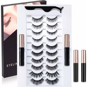 20 OLHOS MAGNÉTICOS REUTILIZÁVEIS - 10 pares de cílios, tamanhos e volumes diferentes para diferentes ocasiões (naturais, meias, volume, etc.) -Eles têm ímãs que aderem ao líquido do delineador. -Inclui 2 delineadores para fixar a linha antes de colocar a aba magnética. -Inclui clipe para remover e fixar os cílios. MODO DE USO - Desenhe a linha da pálpebra superior (delineie), com o delineador magnético (isso fará com que os cílios grudem). - Pegue a ponta dos cílios magnéticos com os dedos ou uma pinça, coloque nos cílios reais e acomode-os para aderir ao delineador magnético.
