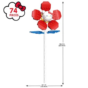 - Cores vibrantes da Sanrio: utilize 74 tijolos multicoloridos para criar uma flor de Hello Kitty vívida e atraente, inspirada na paleta de cores icônica da Sanrio.