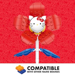Flor Sanrio Hello Kitty, licenciada oficialmente pela Brickcraft, com rosto e pétalas detalhados, incluindo 74 peças. Conjunto de construção de tijolos multicoloridos