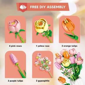 "Bem-vindo à Chanbrick - o mundo dos blocos de construção que você selecionou cuidadosamente! Chanbrick é uma marca focada em brinquedos de blocos de construção. Nossos produtos são amados pelos consumidores por seu estilo único, excelente qualidade e inovação infinita. Chanbrick, não estamos apenas vendendo blocos de construção, estamos vendendo a experiência de felicidade e crescimento. Bem-vindo ao nosso mundo de blocos de construção e construir possibilidades ilimitadas conosco! - Conjunto abrangente: um buquê de tijolos de 1011 peças incluindo tulipas e camélias, completo com vaso - Fácil de usar: inclui instruções de cor para facilitar a montagem, feito de material ABS robusto - Apelo estético: oferece um ambiente floral encantador e duradouro para casas ou escritórios - Pronto para presente: embalado em uma caixa elegante, o que o torna um presente ideal para várias ocasiões - Suporte ao cliente: Atendimento ao cliente dedicado pronto para ajudar a qualquer momento