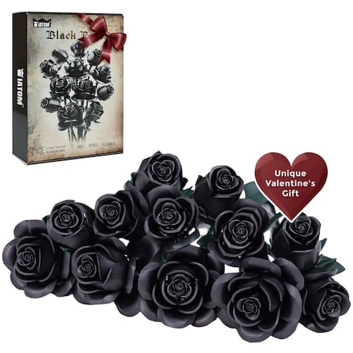 Kit de montar buquê de rosas pretas iATOM Por que nos escolher: Fornecemos peças de alta qualidade e há um alto grau de correspondência entre as peças, compatível com as principais marcas. Fornecemos instruções passo a passo com imagens e notas de texto. Todo o conteúdo é embalado individualmente e em sacos plásticos, e cada pacote tem uma etiqueta de peça, que pode encontrar as peças necessárias mais rapidamente e trazer uma melhor experiência de instalação. - [Exclusivo buquê de flores de rosas negras] - O conjunto de construção da coleção botânica de rosas iATOM é cuidadosamente projetado com diferentes formas de pétalas representando a vitalidade da flor de rosa em diferentes estágios para apresentar uma aparência de rosa mais realista, o design de material fosco preto arrojado destaca sua singularidade para criar um deslumbrante buquê de rosas exclusivo - Decoração de cena personalizável: o buquê de rosas pretas tem pétalas e folhas balançáveis, mostrando várias posturas elegantes; as hastes do buquê permitem que você personalize seu comprimento para caber em vários vasos; as formas realistas de pétalas e cores exclusivas adicionam mistério a cada canto, misture e combine com outros conjuntos de buquê de flores para criar decorações mais inesperadas - [Decoração de flores para casa mais durável] – Use tijolos de buquês de flores como um substituto para flores reais, menores custos de manutenção de flores, não desbotam e as flores que nunca murcham representam o amor eterno. Em comparação com outros presentes, os buquês de rosas pretas têm um significado melhor e melhoram a interação entre o amante, compartilhe esta maravilhosa atividade com quem você gosta - Ideia de presente exclusiva: iATOM rosa preta é um ótimo presente para os amantes de flores e plantas quando adultos, também perfeito para fãs de arte gótica e decorações exclusivas, aprecie criações artísticas únicas, faça este conjunto de montar buquê com a garota ou mulher de quem você gosta, expresse suas bênçãos para alguém especial, faça um presente atencioso para o Dia dos Namorados, Dia das Mães, aniversário - [Serviço seguro e de alta qualidade] - Cada tijolo de flor é feito de plástico ABS seguro com superfície lisa e sem odor, aprovado profissionalmente testado para garantir que todas as peças estejam perfeitamente conectadas e totalmente compatíveis com lego. Vem com etapas de montagem de cores fáceis de entender e caixa de embalagem requintada. Além disso, oferecemos excelente suporte pós-venda, sinta-se à vontade para entrar em contato conosco com qualquer dúvida