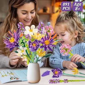 Conjunto de montagem de buquê de flores, 891 peças, conjunto de buquê de flores artificiais faça você mesmo, pássaros do paraíso e buquê de lírio d'água para decoração de escritório em casa para adultos, presente para dia dos namorados, dia das mães - ?Conjunto de montagem deslumbrante de buquê de flores?Este conjunto de montar buquê de flores brilhantes consiste em 6 tipos diferentes de buquê, cada flor em uma cor viva e forma realista, para nos dar a experiência de visualização perfeita. O buquê de flores artificiais inclui 3 nenúfares, 2 pássaros do paraíso, 2 lírios de chuva amarelos, 2 plumeria obtusa, 2 lavanda e 2 verbena. - ?Design exclusivo, adequado para bricolage?Este conjunto de construção de buquê possui flores ajustáveis, formas de folhas e comprimentos de caule; você pode exigir que o buquê seja ajustado e pode combinar livremente, romântico, único e cheio de beleza. O conjunto de montar buquê pode trazer a você e seus filhos uma excelente experiência de bricolage. - ?Decoração elegante ?O conjunto de buquê de plantas artificiais com cores brilhantes é perfeito para decorar sua casa ou local de trabalho. Este buquê nunca desbota pode florescer durante todo o ano, criando uma atmosfera elegante para o seu quarto por um longo tempo, tornando sua vida mais refinada e elegante. O buquê não precisa ser cuidado regularmente, o que é uma boa solução para o problema de flores reais desbotarem facilmente. - ?Durável e fácil de montar?Este buquê é feito de material ABS de alta qualidade, que pode manter sua cor brilhante mesmo após uso prolongado. E o buquê é feito com tecnologia de corte avançada para fazer com que cada bloco se encaixe perfeitamente entre cada bloco. O conjunto de montagem de buquê inclui instruções detalhadas de versão em papel com etapas de montagem claras e concisas, facilitando a montagem de todas as crianças e adultos. - ?O presente ideal para qualquer ocasião?Este conjunto exclusivo de montar buquê de flores é perfeito para meninos e meninas de todas as idades. Cada flor é cuidadosamente projetada, e a flor eterna simboliza o amor eterno. Você pode enviar este buquê de flores artificiais para sua família, amigos e parceiros em feriados importantes como o Dia dos Namorados, Ação de Graças, Dia das Mães e Natal. Este presente ideal exclusivo pode trazer surpresas inesperadas e felicidade.